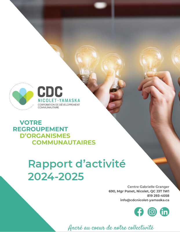 Nos rapports annuels d’activités sont produits tous les ans afin d’évaluer et d’apporter une réflexion sur nos pratiques organisationnelles. Ils synthétisent toutes nos activités, réalisées au courant de l’année. En toute transparence, ils démontrent une perspective d’évolution de notre Corporation de Développement Communautaire (CDC) pour consolider et favoriser un climat de confiance auprès de nos membres et partenaires. Également, ils mettent de l’avant nos valeurs et notre philosophie par nos actions concrètes qui y sont présentées.